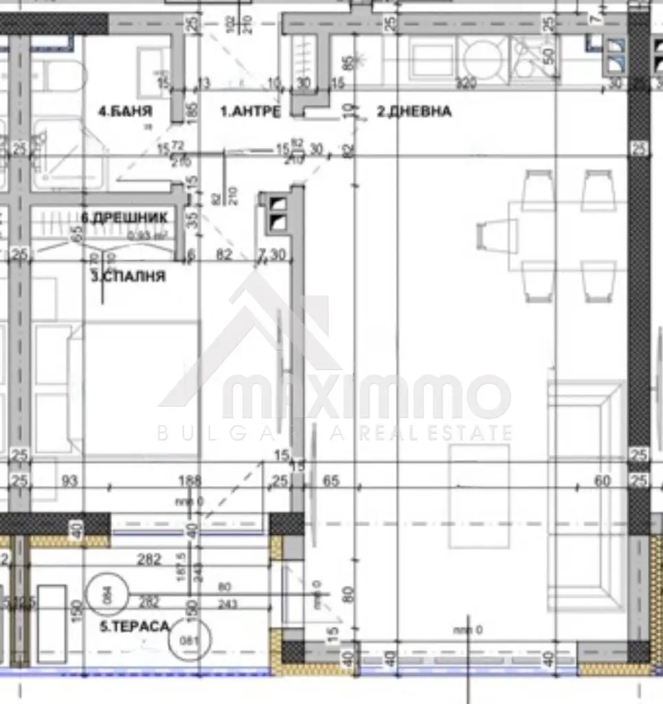 Завършени общи части с камък, асансьор, инсталирана домофонна система, монтирани инсталации включително оптични кабели, FTP и инсталация за климатици във всяка стая, камери за наблюдение около сградата и станция с възможност за зареждане на ел. автомобил.