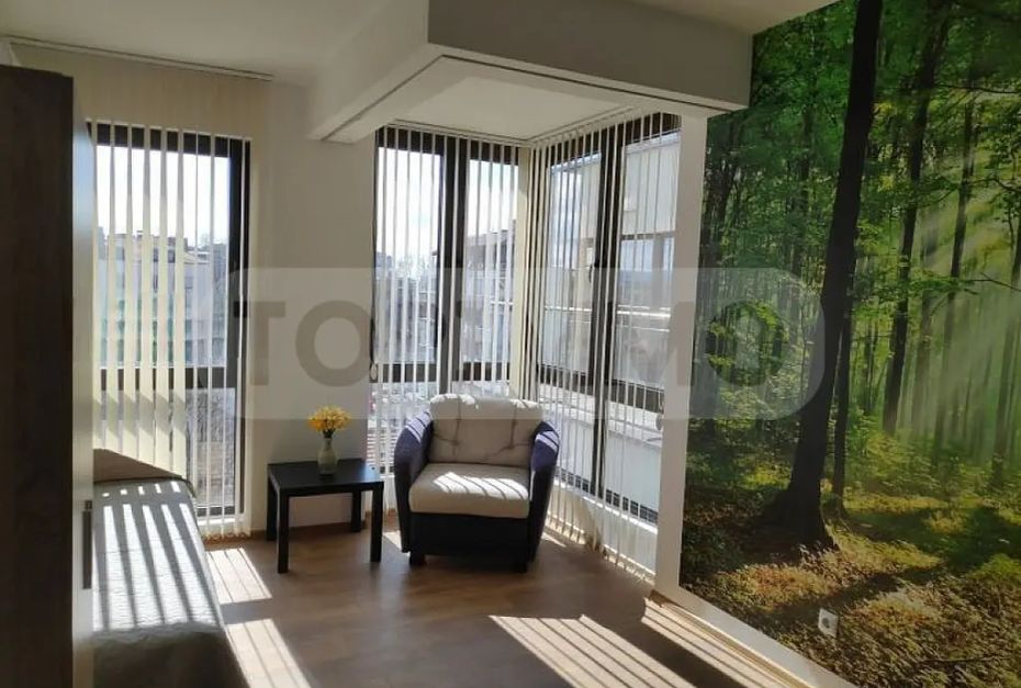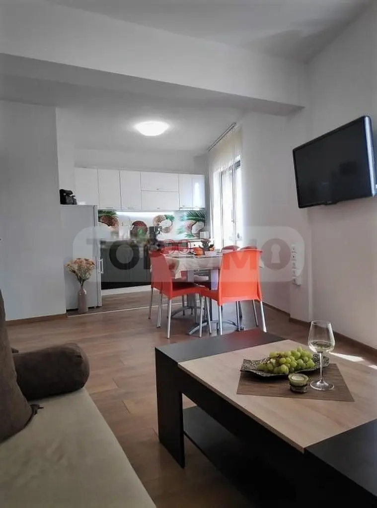Апартаментът е разположен на 6-ти непоследен етаж в нова сграда с 2 асаньора. Състои се от дневна с кухненска част, 2 спални, баня с тоалетна, 2 килера и балкон. Напълно обзаведен и оборудван с всичко необходимо.