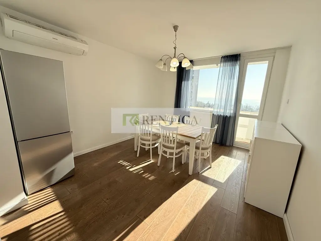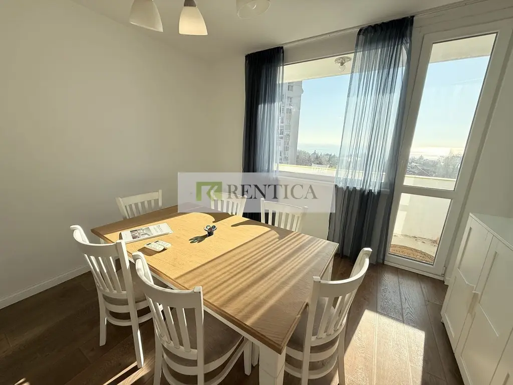 Rentica.bg предлага под наем тристаен, съвременно обзаведен апартамент, разположен в един от най-комуникативните и атрактивни райони в гр. Варна - кв. Чайка, на метри от Морската градина. Апартаментът се намира на четвърти жилищен етаж. Състои се от просторна дневна с кухненска част, две просторни спални, баня, тоалетна, тераса. Жилището се предлага напълно обзаведено и оборудвано с всичко необходимо за домакинството. Отоплението е с климатици.