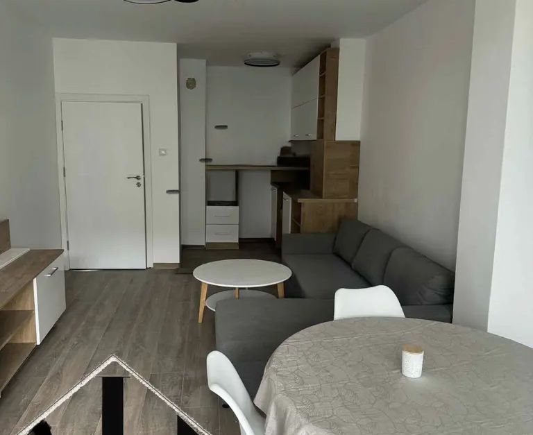 Апартаментът е в отлично състояние след основен ремонт, с нова мебелировка, качествена изолация и климатици с енергоспестяващ клас във всички помещения.
