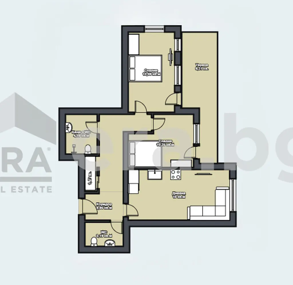 ЕРА Визия предлага за продажба тристаен апартамент със застроена площ 85 кв.м (101,42 кв.м с общите части), в новострояща се кооперация в начален етап в кв. 'Изгрев', на 200 м от магазин Билла и на 150 м от спирка на градски транспорт. Имотът ще бъде разположен на 6 етаж от общо 10 и ще се състои от: коридор (9,95 кв.м), дневна с кухненски бокс и трапезария (18 кв.м), две спални (съответно по 13,06 кв.м и 10,25 кв.м), баня с тоалет (4,19 кв.м), килер (1,47 кв.м), отделен тоалет (3,19 кв.м), тераса с излаз от двете спални (9,21 кв.м). Изложение: изток. Ще се предлага необзаведен.
