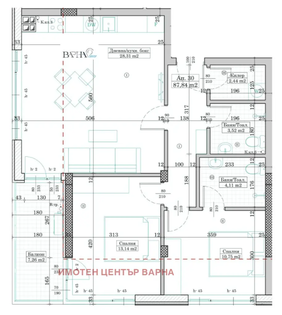 Имотен Център Варна представя на Вашето внимание, тристаен апартамент в сграда ново строитество.Акт-16 : 2026г. Разпределение : входно антре, просторна всекидневна 2 спални, 2 бани с тоалет, балкон, килер. Сградата предлага чистота на въздуха и усещане за прохлада. Живеещите ще могат да се наслаждават на завладяващи изгледи към зелените площи, които се преливат в морския хоризонт. На първия етаж е разположен удобен покрит паркинг с 22 места, а допълнително в сутерена има още 32 паркоместа. Освен това, близката спирка на градския транспорт улеснява достъпа до всяка точка на града. В близост до сградата са разположени: УМБАЛ СВЕТА МАРИНА, Технически университет, магазини, аптеки, автобусни спирки и др. Попитайте за своята лична оферта!