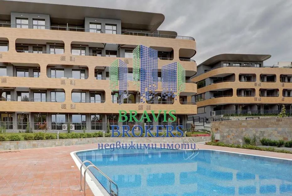 Имотът представлява : Голямо входно антре , просторна и светла всекидневна с обособена кухненска част / около 30 кв.м / ; две функционални и уютни спални / 16 и 14 кв.м / , едната от които със самостоятелни баня с тоалет , баня с тоалет, перално помещение, една голяма тераса с НЕСКРИВАЕМА МОРСКА ПАНОРАМА. Жилището е разположено на среден етаж в нова луксозно завършена жилищна сграда с басейн , въведена в експлоатация 2020г.!