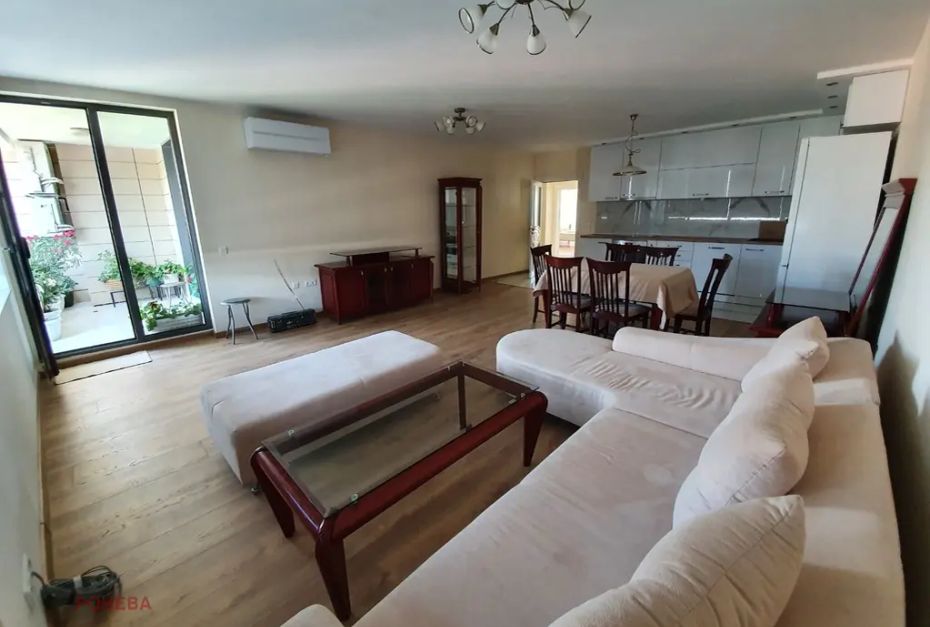Предлагаме Ви за продажба модерен, светъл и комфортен тристаен апартамент! Жилището е разположено на шести етаж от осем етажна луксозна сграда. Апартаментът е с площ от 150 кв.м, със следното разпределение: входно антре, слънчева всекидневна с кухненски бокс 45 кв.м, две просторни спални, две бани с тоалетна, две тераси като едната тип лоджа.