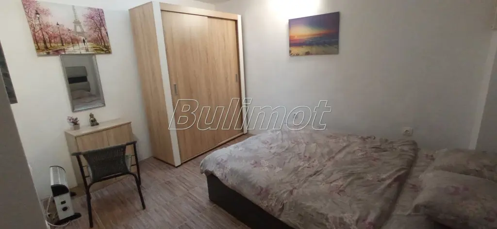 Предлага се напълно обзаведено със всички налични уреди, телевизор, нов хладилник, фурна, котлони, микровълнова, гардероби, два броя порт манта, нова баня, килер, който е предвиден за втора баня с тоалетна с всички вик връзки, НОВ КЛИМАТИК!!! Намира се в сграда с много добре поддържани общи части, контрол на достъпа достъпа.ВИДЕОНАБЛЮДЕНИЕ!