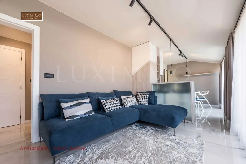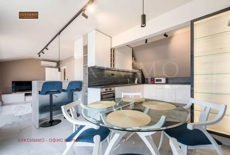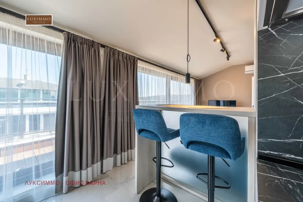 Апартаментът впечатлява с невероятна морска панорама от всяка стая и стилен интериор, завършен по дизайнерски проект с внимание към всеки детайл.
