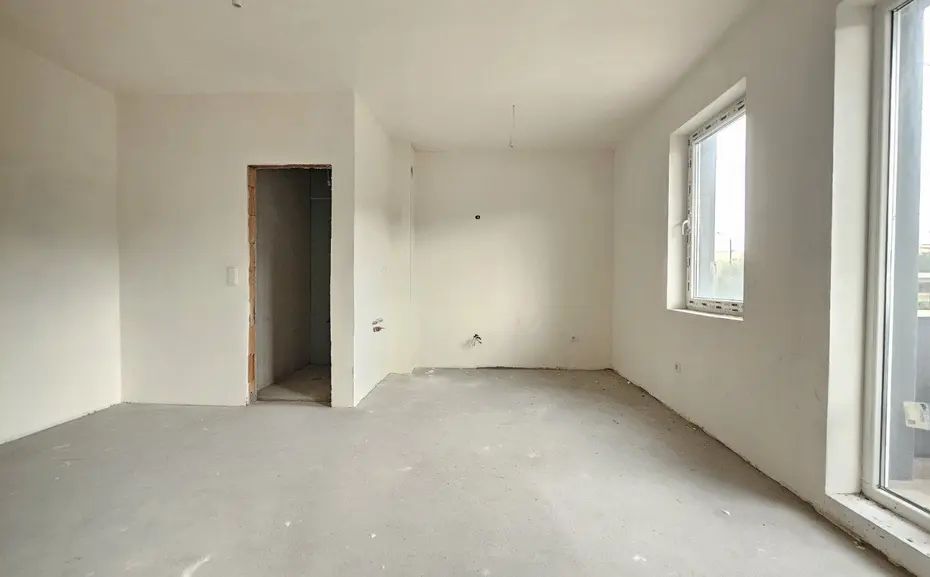 Сградата е тухлена, строителството е от 2026 г., с висококачествена PVC дограма и блиндирана входна врата; инсталациите са завършени до ключове и контакти.