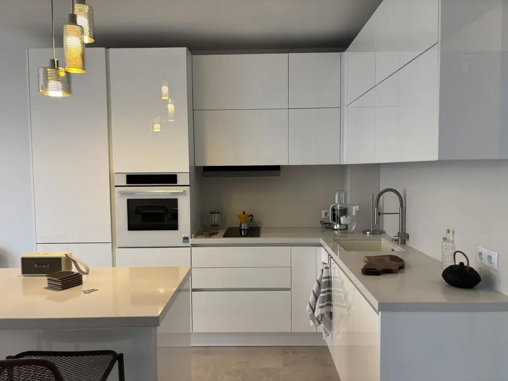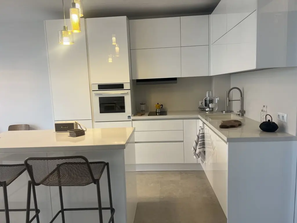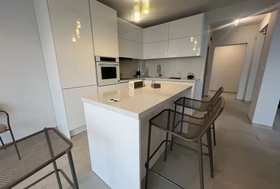 Тристаен апартамент с площ от 116 кв.м, разположен в м-т Ален мак, Варна, на 100 метра от плаж Кабакум. Имотът е резултат от обединението на два самостоятелни апартамента, което осигурява функционално и модерно разпределение.