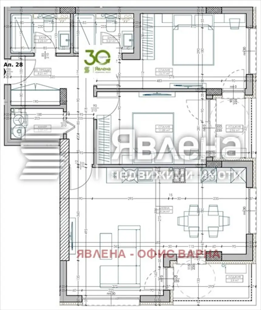 AI обобщениеАпартаментът се намира в новострояща се тухлена сграда в район Младост 2, Варна. Разположен е на 5-ти от 8 етажа и предлага 113 кв.м жилищна площ с функционално разпределение – антре, просторна дневна, две спални, две бани с тоалетни и две тераси тип лоджия. Изложението е югоизточно, осигуряващо добра естествена светлина през деня. Сградата ще бъде с 11 етажа, модерна архитектура и качествено изпълнение, с предвидени външни и подземни паркоместа. Районът е тих, с добра инфраструктура, близо до хипермаркети, магазини, спирки, училища и детски градини, което осигурява удобство и комфорт за живущите.
