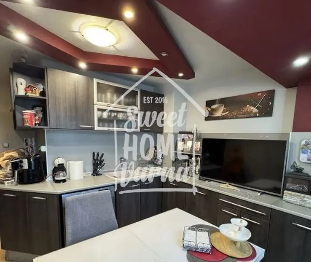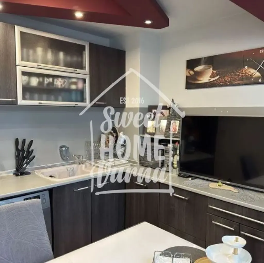 Екипът- Sweet Home Varna Ви предлага апартамент с три помещения. Изложение: югозапад/ изток. Позициониран на трети жилищен етаж от седем етажна сграда снабдена с асансьор и добре поддържани общи части, контролиран достъп и домофонна система. На !ЖП: 61 кв.м. са разположени както следва: коридор, баня и тоалетна в едно помещение, кухня с усвоена тераса към нея, спалня, просторен хол с излаз на остъклена с ПВЦ тераса и прилежаща маза -3 кв.м. В близост: магазини,поликлиника,супермаркети,училище, детска градин, пазар и спирки на градски тарнспорт до всяка точка на града, парк. Предлага се напълно обзаведен. Всичко необходимо за едно домакинство:кабелна телевизия,интернет, пералня, сушилня, климатици, готварска печка, котлони, хладилник, Подходящ за семейно жилище или инвестиция. За допълнителна информация и огледи цитирайте код: 4515 на тел.: 0895803009 Мария Лечева.
