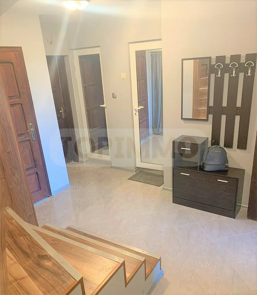 Разпределението включва антре, просторна дневна с кухненска част, две спални с тераса и баня с тоалетна на първото ниво, както и още една спалня на второто ниво. Кухнята е оборудвана с нови уреди.