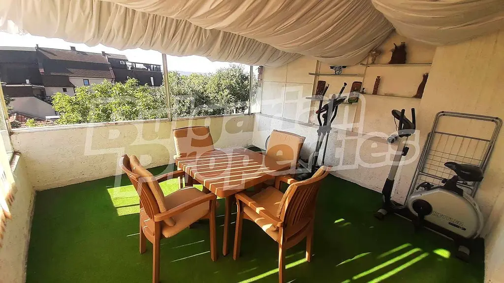 Имотът се намира на пети, последен етаж с площ 120 кв. м. разпределена между:
