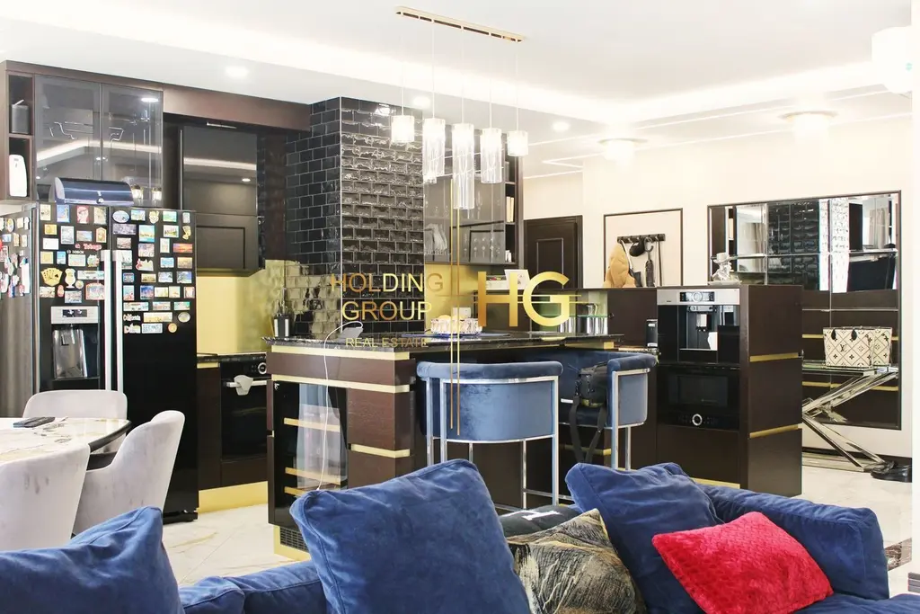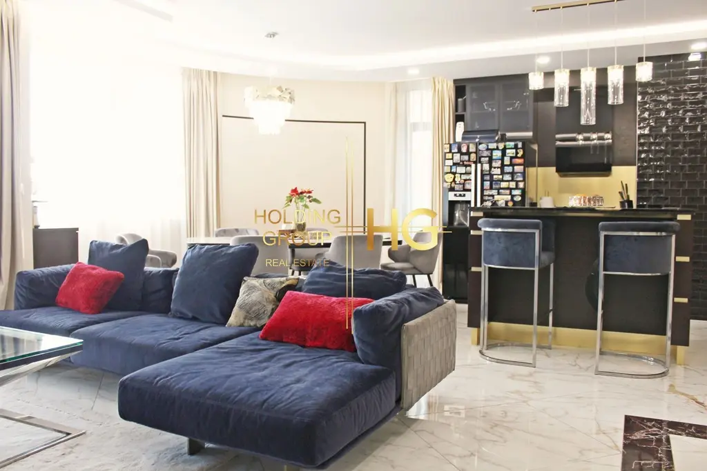ЕКСКЛУЗИВНО ОТ HOLDING GROUP REAL ESTATE! Предламе на Вашето внимание уникален многостаен апартамент, впечатлчващ със своята визия. Разположен е в реномирания и престижен комплекс Варна Сити Парк Юг с разрешително за ползване Акт16. Обзавеждането и решенията по имота са чрез индивидуален дизайнерски проект, който включва висококачествени естествени материали, обзавеждане с мебели по поръчка и електрически уреди от висок клас, предимно на марката Bosch. Гранитът е другият естествен материал, който е ползван за бара, кухненския плот, зад телевизора в дневната, както и в офиса правейки ги изключително красиви, практични и издръжливи. Електронни брави за вход с чип, пръстов отпечатък или код. Осветлението е осигурено също чрез дизайнерски проект, което прави имота още по-елегантен. Апартаментът е обединен от тристаен и четиристаен апартамент, като може да се преразпредели по различни варианти, удобни за новия собственик.