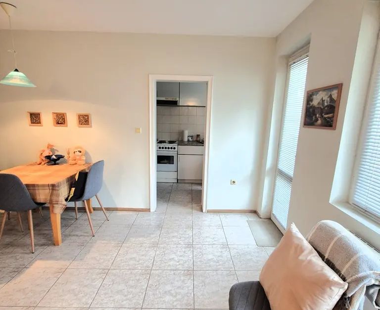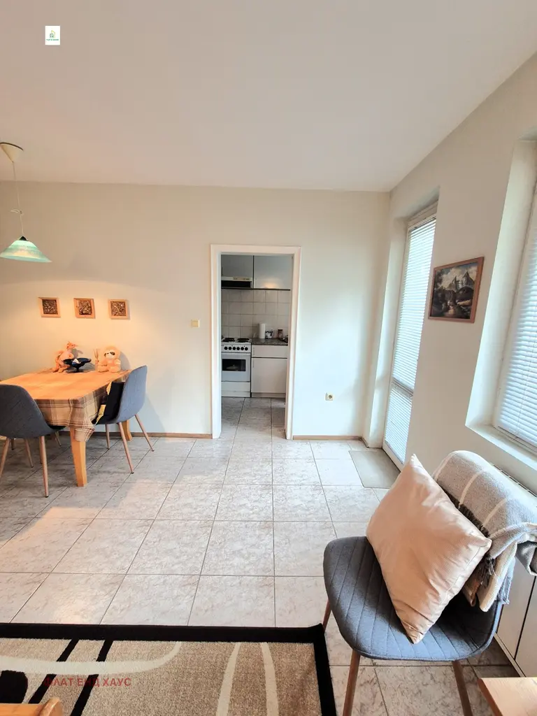 Дневен тракт с кухненски бокс: Светла и просторна дневна с обособен кухненски бокс. Дневната част е с разпределение, създаващо идеално място за почивка и семейни събирания.
