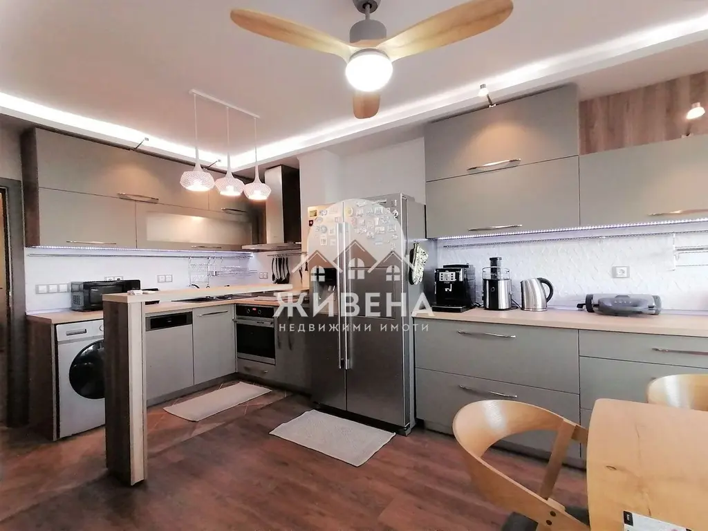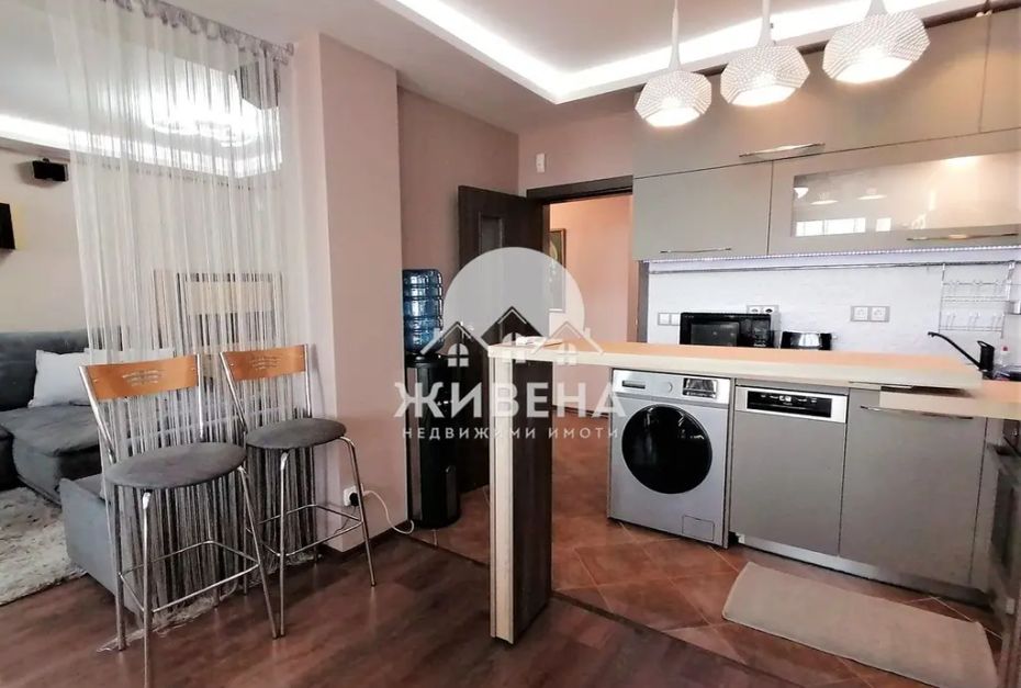 Агенция Живена отдава под наем отлично обзаведен апартамент с морска панорама, 3 спални и 3 санитарни помещения. Апартаментът е разположен на 4-ти етаж в тухлена сграда с асансьор и добре поддържани общи части, която се намира в района на пазара в ж.к. Чайка, град Варна. Жилището е със следното разпределение: голям Г-образен коридор, просторен дневен тракт с кухня и трапезария и хол, с излаз на закрита тераса с панорамна гледка към морето, 3 самостоятелни спални, общо 3 бани (2 от тях с WC), 2 тераси. Холът е обзаведен с разтегателен диван, големи шкафове, телевизор и аудио уредба. Жилището се предлага напълно обзаведен и оборудван с абсолютно всички необходими електроуреди (в гаранция) за всяко домакинство - керамичен котлон, готварска фурна, абсорбатор, голям хладилник с фризер и диспенсър, пералня със сушилня, съдомиялна машина, тостер, микровълнова печка, ел.кана, кафе машина, машина за фрешове, прахосмукачка, ютия, кухненска посуда). Отоплението е осигурено с инверторни климатици във всяка стая. Комфортното обитаване на това жилище е допълнено с топло- и шумоизолация за максимална ефективност, както и нисък разход на ел. енергия, както през зимата, така и през лятото. За паркиране има обществен паркинг около блока. Не се допускат домашни любимци. Подписва се договор само за дългосрочен период (мин. 1 година). Като при отдаването се изискват два депозита, издават се фактури за разход. В цената е включена такса за поддръжка на сградата. Снимките са реални и са публикувани със съгласието на собственика. Имотът е свободен за огледи. За повече информация и огледи, моля, позвънете на посочения номер за връзка. Оферта 3979