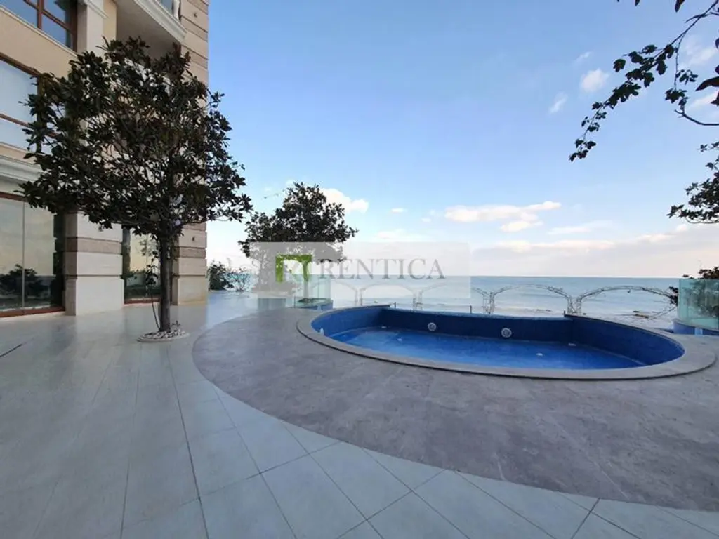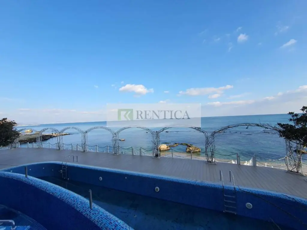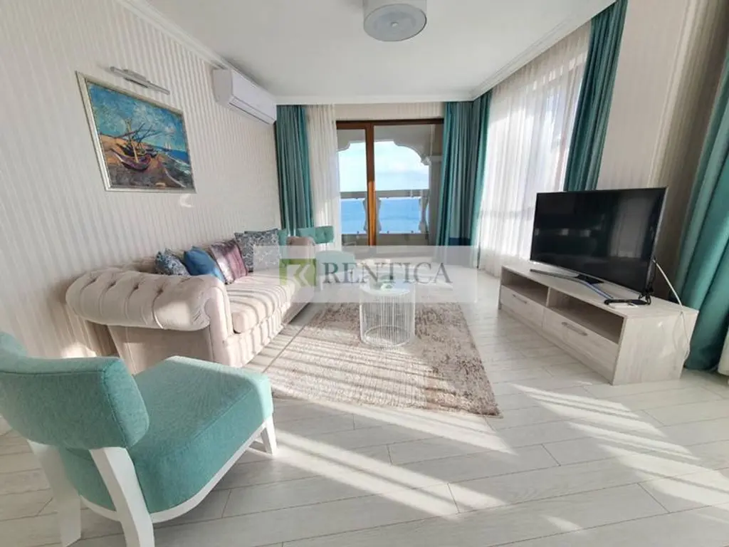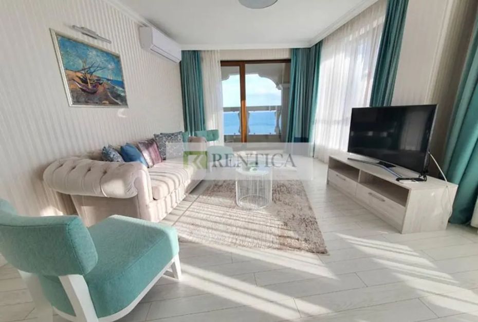 Rentica.bg предлага под наем луксозно обзаведен апартамент в к.к Златни Пясъци, местност Кабакум. Апартаментът се намира в най-елитния, луксозен комплекс, разположен на брега на морето. Комплексът е с излаз на плажа и разполага с басейн, СПА център, ресторант, сладкарница, озеленен вътрешен двор, видео наблюдение и охранителна система, контрол на достъпа /24 часова охрана/. Жилището се състои от просторен дневен тракт с кухня, луксозно обзаведени и оборудвани с всичко необходимо за домакинството, три спални, две бани, тераса. Отоплението е с климатици. Паркомясто. Отдава се дългосрочно.