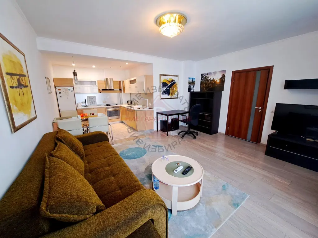 Сградата е с асансьор, контрол на достъпа и възможност за паркиране, а апартаментът е в отлично състояние и напълно обзаведен.