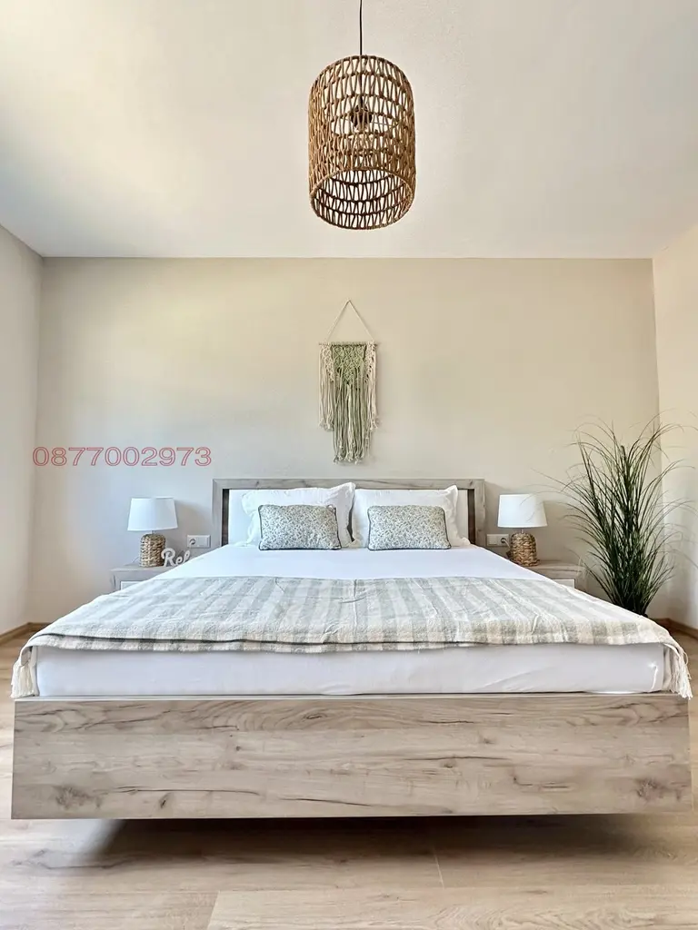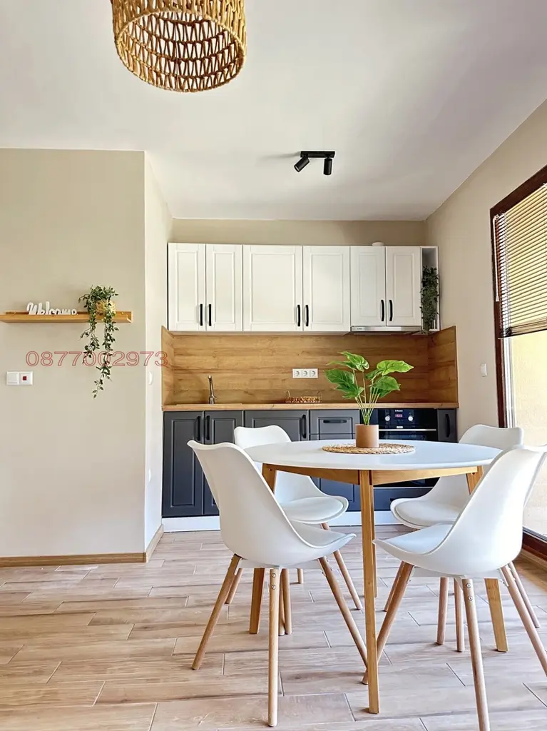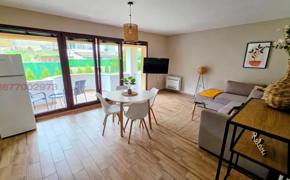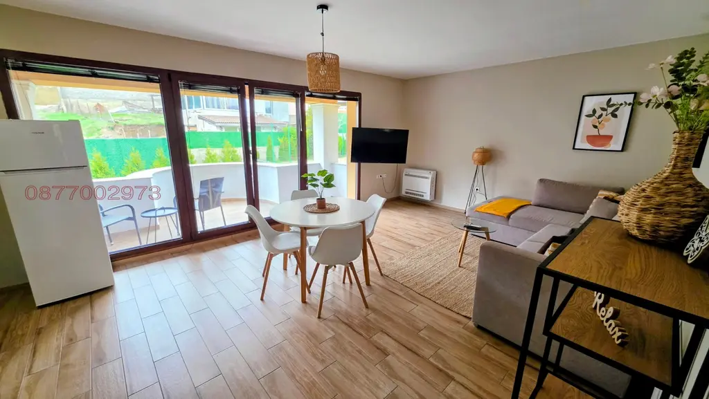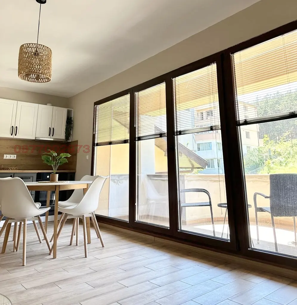 Просторен, нов напълно завършен и обзаведен, луксозен двустаен апартамент. Имотът е обзаведен модерно, с меки цветове и предлага всички удобства, като изцяло оборудвана кухня, много пространства за съхранение, кокетна спалня, модерна баня с тоалетна, килер/дрешник, тераса с гледка към градината и гората. Паркомясто към апартамента с възможност за индивидуален трифазен ток за електромобили на отделен електромер. Домашни любимци се допуксат само с изришното предварително съгласие на собственика. Разположен в луксозен бутиков комплекс с обширен паркинг с порта с дистанционно управление, обширни зелени площи за отмора, система за видеонаблюдение, фитнес зала, басейн със зона за плажуване и гледка към морето, външна пристройка за Барбекю (лятна кухня с трапезария и тоалет), игрище за футбол и баскетбол, пинг понг, както и директен излаз към близката гора от задния двор. Сградата е строена с най-добрите материали за изолация на пазара и с трикамерна немска дограма, създаващи идеален микроклимат навсякъде в нея. Това отразява и ниските сметки за консумация на електроенергия. Жилището се намира в кв. Виница - 10 мин. пешеходно от автобусна спирка, м-н Макао и Май Маркет, уреден квартал с напълно асфалтиран път и улично осветление. Тих и спокоен район. В наема са включени, консумация на вода, високоскоростен интернет, ползване на финтеса, басейна, игрището и задвния парк, едно парко място, поддръжка и озеленяване на комплекса, ток и почистване на общи части. Възможност за сателитна телевизия. Основно преимущество е, че комплекса е с ограничен брой апартаменти, т.е. с малко съседи и ползватели на градината и другите съоръжения. Това създава и допълнително усещане на конфорт.