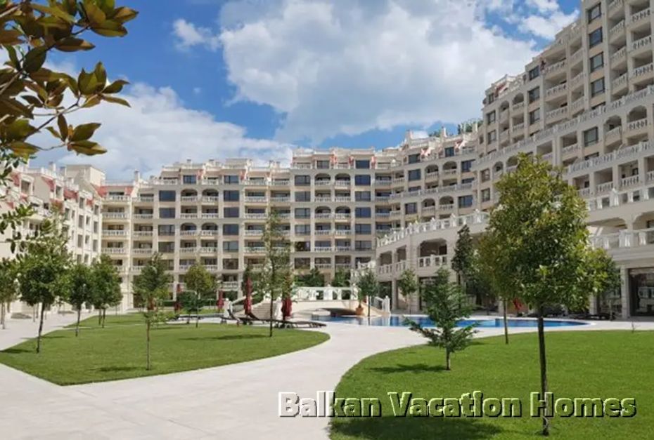 Имотът е част от добре поддържан, затворен комплекс, разположен на около 100 метра от дълъг пясъчен плаж с близки ресторанти и барове.