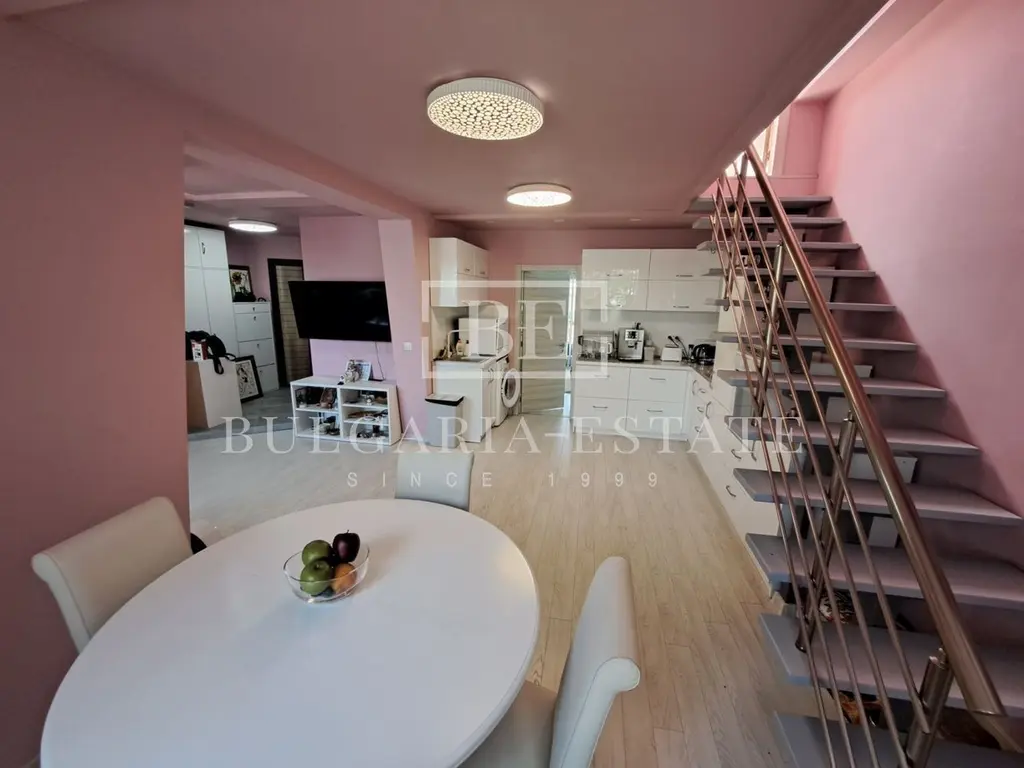 - Апартаментът разполага с общо три спални, като две от тях се намират на втория етаж на мезонета.