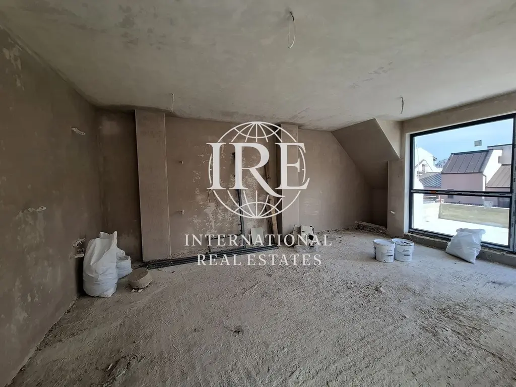 дневен тракт с кухненска част с място за трапезария и мека мебел, и излаз на широк балкон, баня и тоалетна в едно помещение. По вътрешни стълби се стига до две комфортни спални, втора баня с тоалет, дрешник и тераси към всяка стая. Към апартамента има възможност за закупуване на подземно и/или открито паркомясто. Сградата понастоящем е на етап взет Акт 14. Имотът се издава по БДС, като има възможност по желание срещу допълнително заплащане да бъде завършен до ключ или напълно обзаведен с мебели и техника.