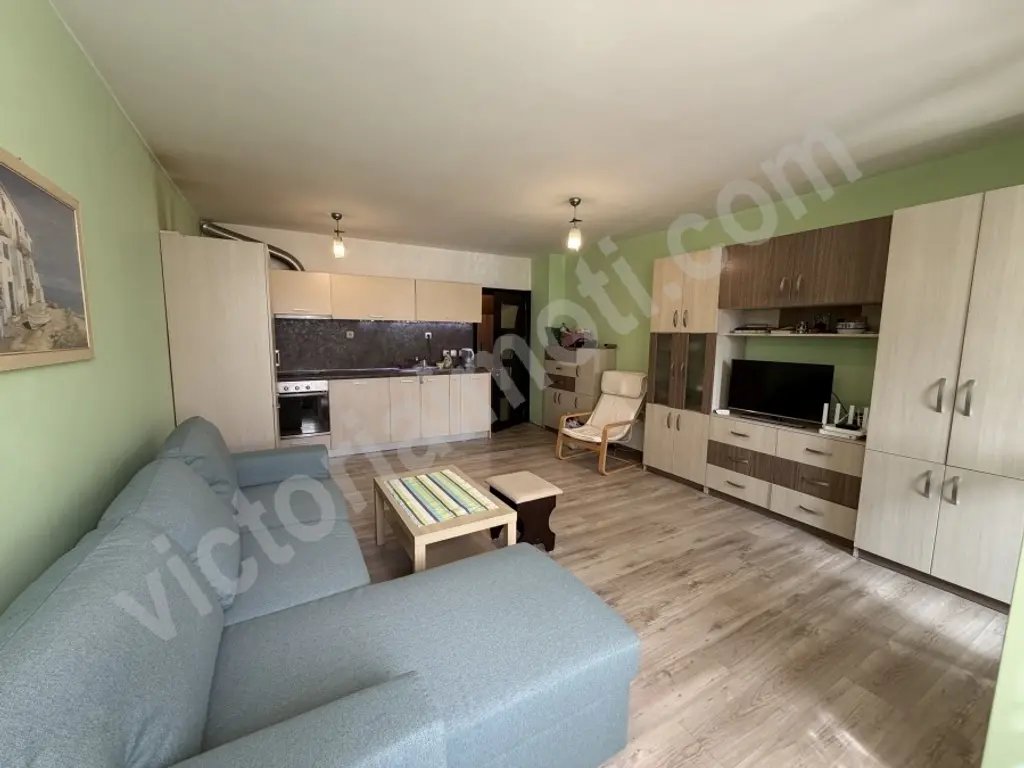 Екипът на Виктория имоти предлага на Вашето внимание слънчев едностаен апартамент в кв. Картала. Мястото е тихо и спокойно, но същевременно добре уредено като в близост има магазини, заведения, кафенета, аптеки, автобусни спирки, пиаца на таксита, паркове и други удобства. Самият апартамент е разположен в сграда ново строителство с изцяло южно изложение, което го прави изключително слънчев и лесен за отопление. Площта му е разпределена между коридор с големи вградени гардероби, голяма стая, която е обособена на кътове, остъклена тераса и баня с тоалетна в един обем. Обзаведено и оборудвано е с всички необходими мебели и електроуреди. Има възможност за допълнително наемане на паркомясто. Заповядайте на оглед!