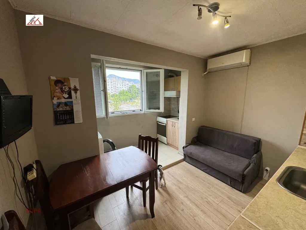 Продава се вътрешен двустаен апартамент с южно изложение след ремонт в района на Т маркет. Жилището е със сменена ПВЦ дограма, гранитогрес , паркет два броя инверторни климатици висок клас както и други подобрения.Имота се продава в състоянието което се намира.