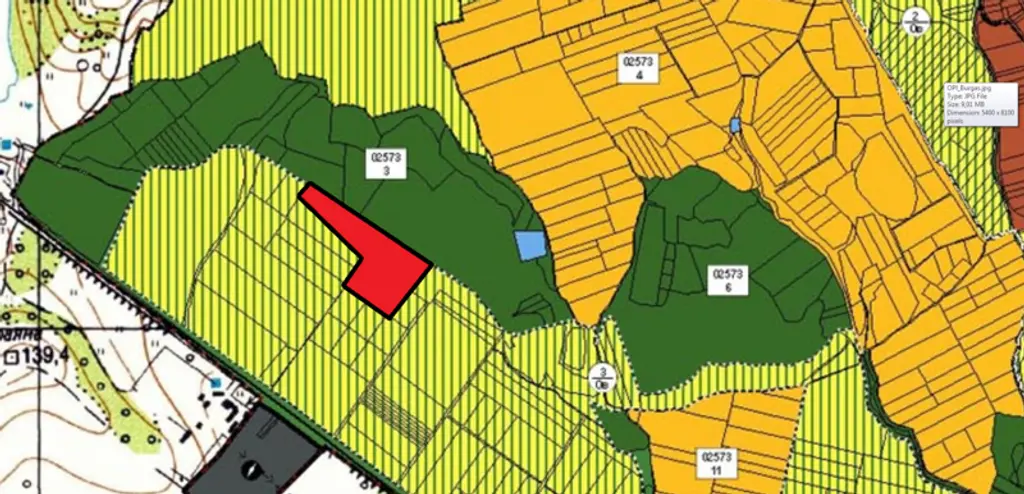 Попада в Общ устройствен план на гр. Бургас и може да бъде сменено предназначението. Не попада в защитена зона от натура 2000.