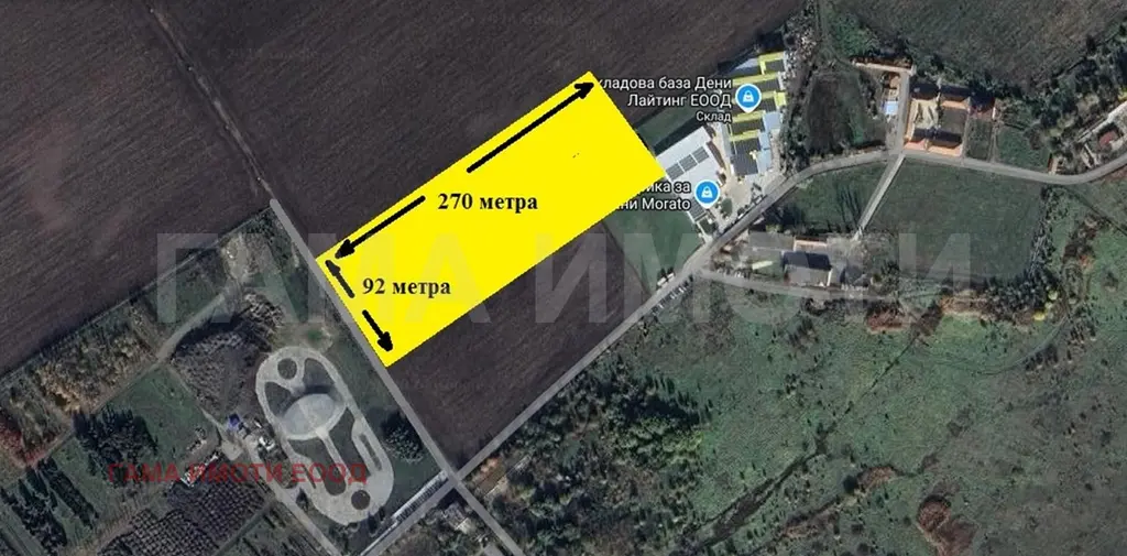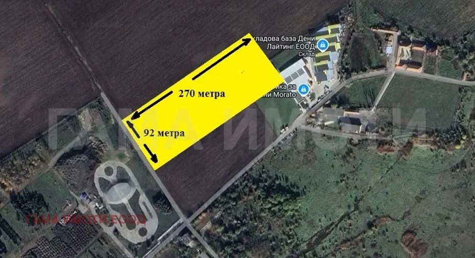 Поземлен имот с площ от 24995 кв.м. и 92 метра лице на второстепенен път, на километър след Чикън груп , в местност Веригите (Синджирли герен), гр. Бургас. Дълбочината на имота е 270 метра. Парцелът е равен и е с правоъгълна форма. Имотът е със статут на земеделска земя, но попада в зона с допустима промяна на предназначението и е в съседство със зона за промишлени дейности. Комуникациите са в непосредствена близост до парцела.