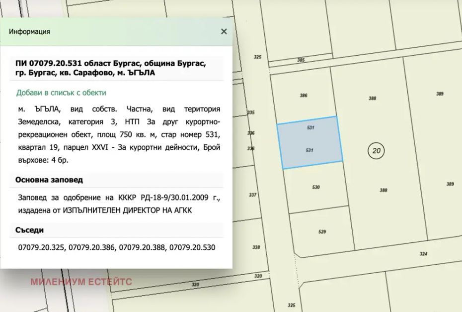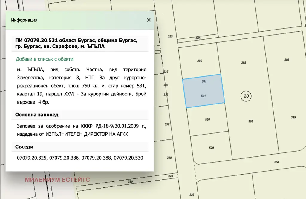 парцел в Бургас, Сарафово, мест. Ъгъла
