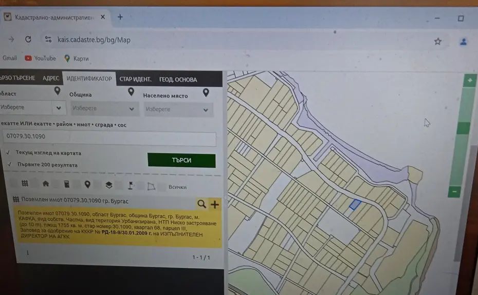 Много добра инвестиция! УПИ от 1755 кв.м. в гр.Бургас,кв.Крайморие, местност Кафка!Прекрасна гледка към морето, на 150м от Южния плаж,в близост до нос Чироза, с лице на улица- 32м.,съгласно ПУП-ПРЗ. Срещу него има голям имот, отреден за учебно заведение. След построяването му парцелът ще увеличи значително цената си. Наблизо е и новото яхтено пристанище. Съгласуван с РИОСВ Бургас. Всички такси платени и изваден от Министерството на земеделието . За жилищно строителство! Зона Жм1. К.К. - 10м.,кинт 0.9. РЗП- около 1600 кв.м.