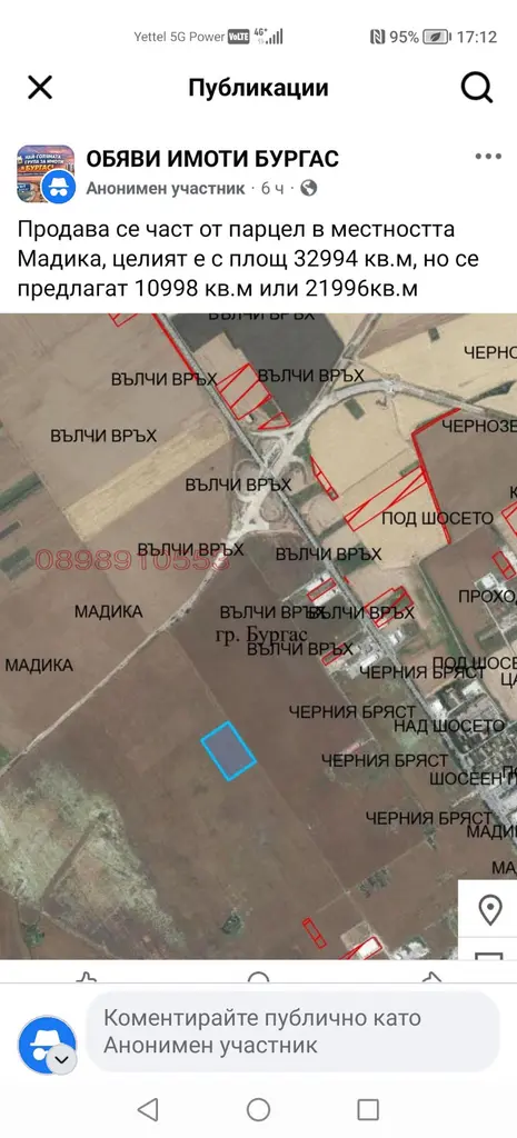 Продава се част от инвестиционен имот в местността Мадика, целият е с площ 32994 кв.м, но се предлагат 10998 кв.м или 21996кв.м, намира се на 500м зад Дженеръс Ауто, на 800м по диагонал от комплекс Азимут и на 200м зад складова база Апогей