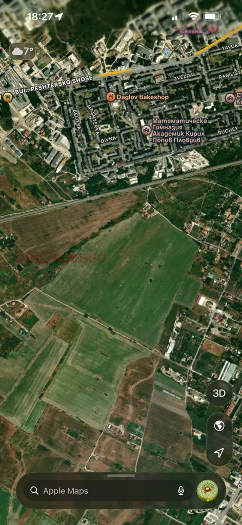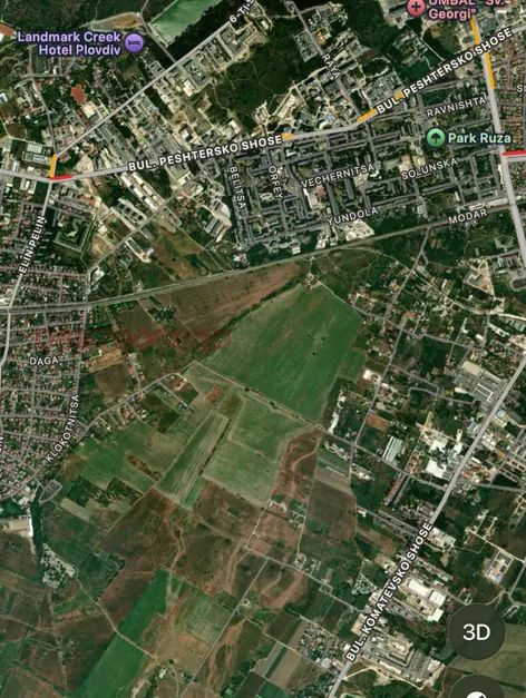 Предлагам за продажба инвестиционен терен с площ 37 дка, част от съсобствен имот, разположен в Пловдив, Терзиите в жилищната част между Прослав и Коматевско шосе.