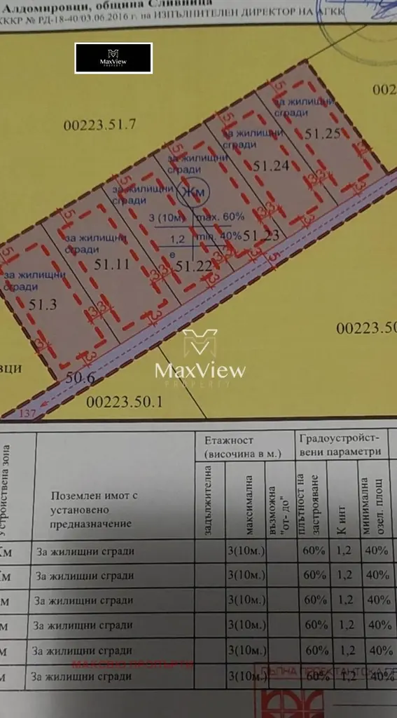 Maxview продава УПИ в с.Алдомировци с правилна форма, подходящ за жилищно строителство, височинна застрояване до 10М. Комуникативно място в бизост до къщи с постоянно живущи. Имота е с площ от 800кв.м. и е част от 6 съседни идентични парцела Теренът е с добър достъп и красива панорамна гледка Лесен достъп до ток,вода! Подходящ е за изграждане на редови еднофамилни къщи! Агенцията съдейства с преференциани условия за своите клиенти при покупка с ипотечен кредит. За повече информация: 0893 069 404 Марио Димитров