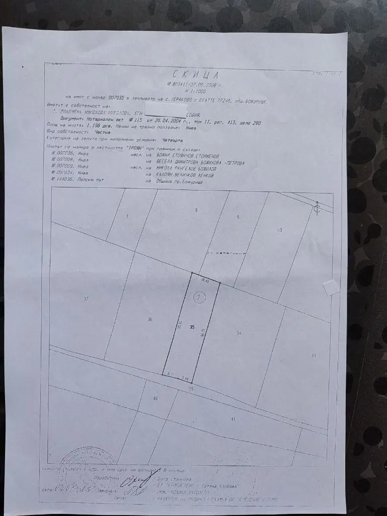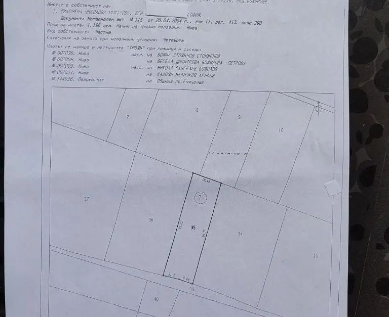 Намира се в местността Троян. С лице на път, от другата страна на който има къщи ( ток и вода) . В момента статут нива. Подходящ за вкарване в регулация и строеж на къща.