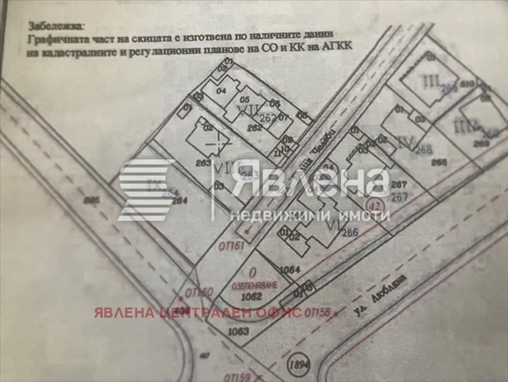 Агенция 'Явлена' продава УПИ с площ 365 кв.м. на ул. Любляна. Предложеният парцел е предназначен е урбанизиран, като има възможност на него да бъде поставено преместваемо имущество или временно позициониран бизнес. Локацията на посочения парцел е подходяща за изграждане на автомивка, авто сервиз, временен офис на куриерска фирма, BOXофис или друг вид бизнес. Има възможност да се наеме/закупи допълнителен парцел, граничещ с предложения.За повече информация, подробности и оглед моля свържете се водещия консултант от офис Младост , Явлена - Таня Дамянова