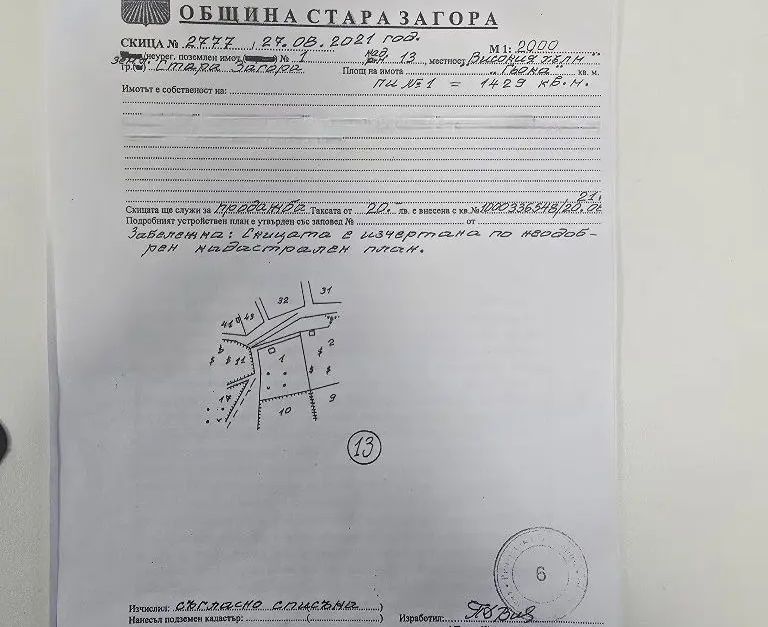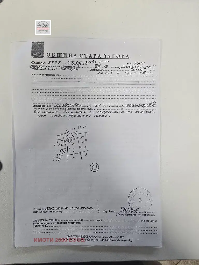 Продава се поземлен имот с площ 1429 кв.м., ПИ 1, разположен в местността Високия хълм Гьока , на много комуникативно и предпочитано място, в непосредствена близост до гр. Стара Загора.