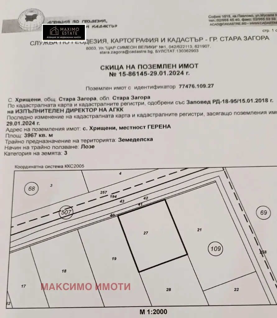 Агенция MAXIMO ESTATE предлага за продажба парцел на Новозагорско шосе - 3967 кв.м