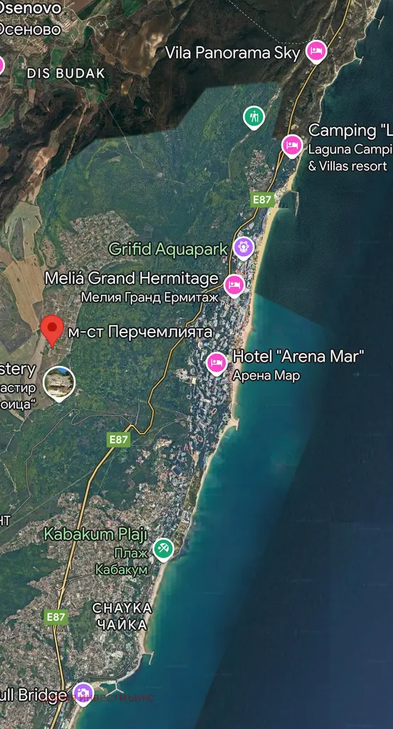 Продаваме имот в Перчемлията. Имотът има ПУП. В района има много вили и къщи за целогодишно живеене . Плътността е 20% и кота Корниз е 7 м . Мястото е много близо до златни пясъци и е много подходящо за вила. От мястото се разкриват гледки към залива. На мястото могат да бъдат построени 6 индивидуални къщи или 12 редови . Всички къщи по два етажа . Този имот е много подходящ за инвестиция .