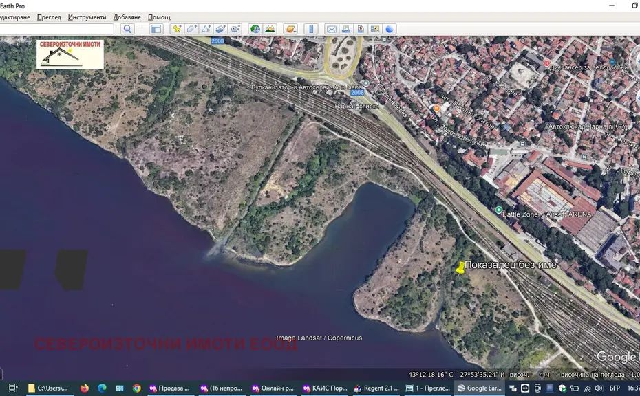 ID 4464 Североизточни имоти Ви предлага за продажба парцел урбанизирана територия за друг обществен обект,комплекс с площ от 11600квм.м. Парцелът е с правоъгилна форма и с лице 130м на Варненското езеро. Намира се в близост до гребната база .