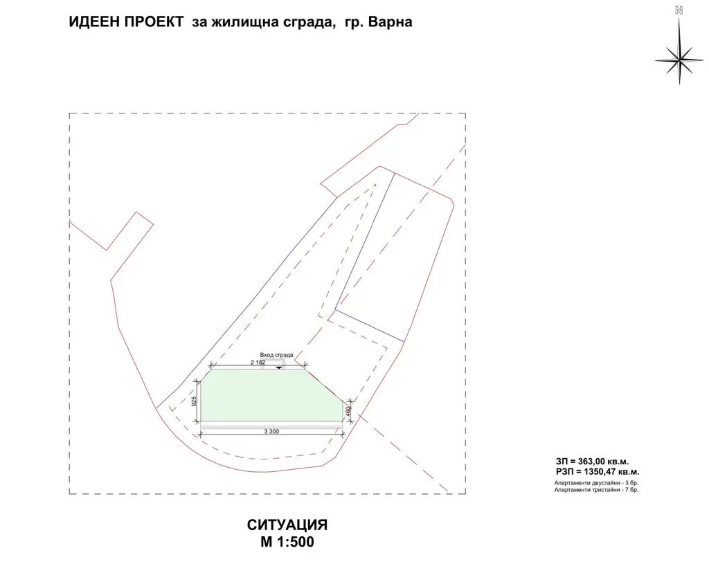 Ток и вода на граница. Парцела има ПУП и е разделен на три равни парцела,но може и отново да се обеди в един общ парцел за построяване на жилищен блок.