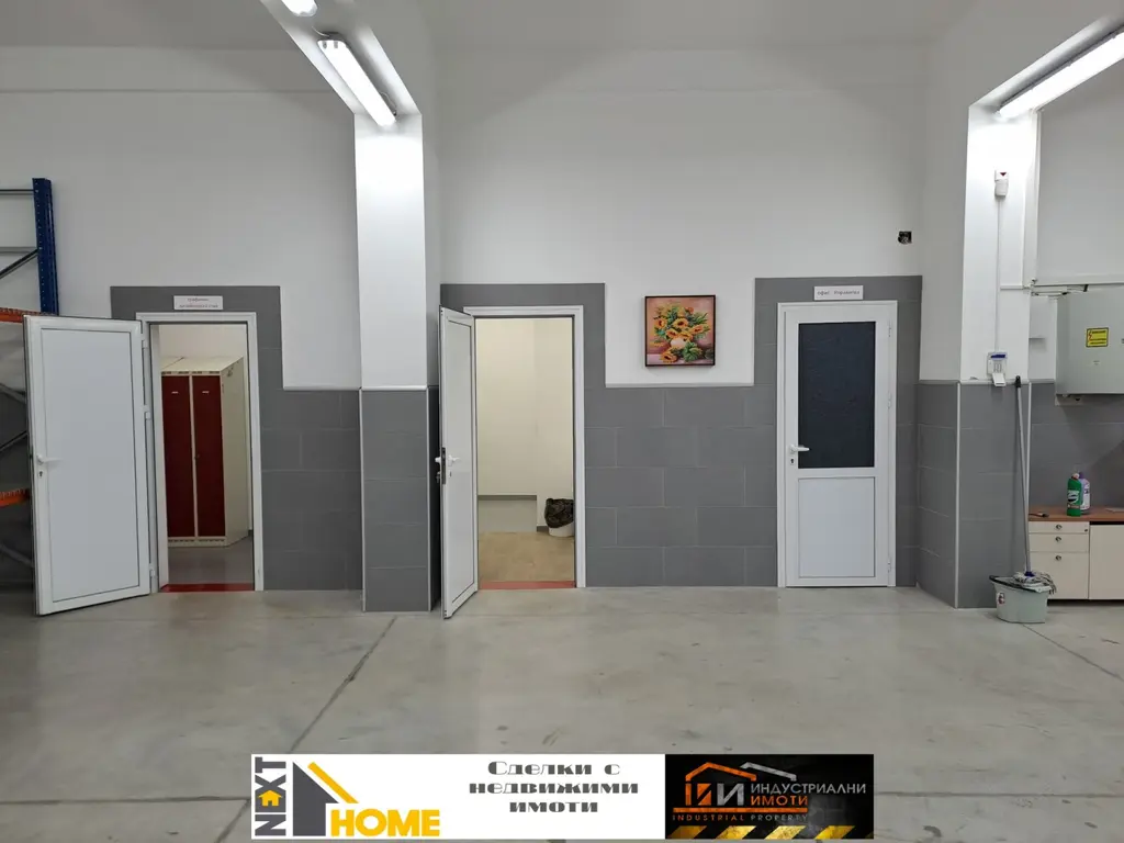 Отдаваме под наем помещение с прилежащо дворно място и външен склад, разположено в източната промишлена зона на гр. Асеновград, с лице на главен булевард, подходящо за производствена и търговска дейност. Помещението е с площ от 470 м2., състои се от голямо работно помещение с два входа (от вътрешен двор и от булеварда), съблекалня, два санитарни възела, офис със собствен санитарен възел и склад в сутерена с площ от 110 м2. Наличен трифазен ток, охранителна система с видеонаблюдение и компресор за въздух.