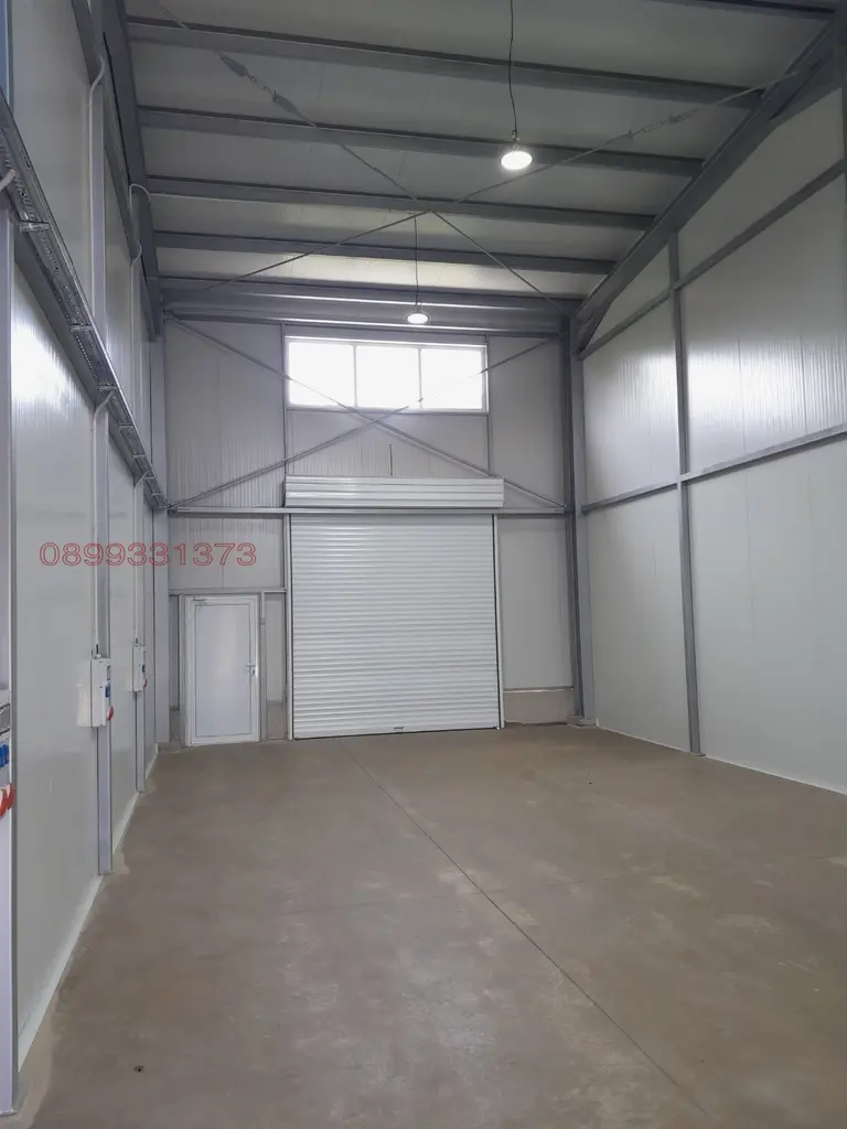 Давам под наем помещение в новоизградено хале. Подходящо за автосервиз, търговска, складова и производствена дейност. Височина 6 метра. Помещението е проходно (срещуположни врати), има две автоматични врати (3м. х 3м.) и две пешеходни врати (1м. х 2м.). Две паркоместа. Видеонаблюдение.