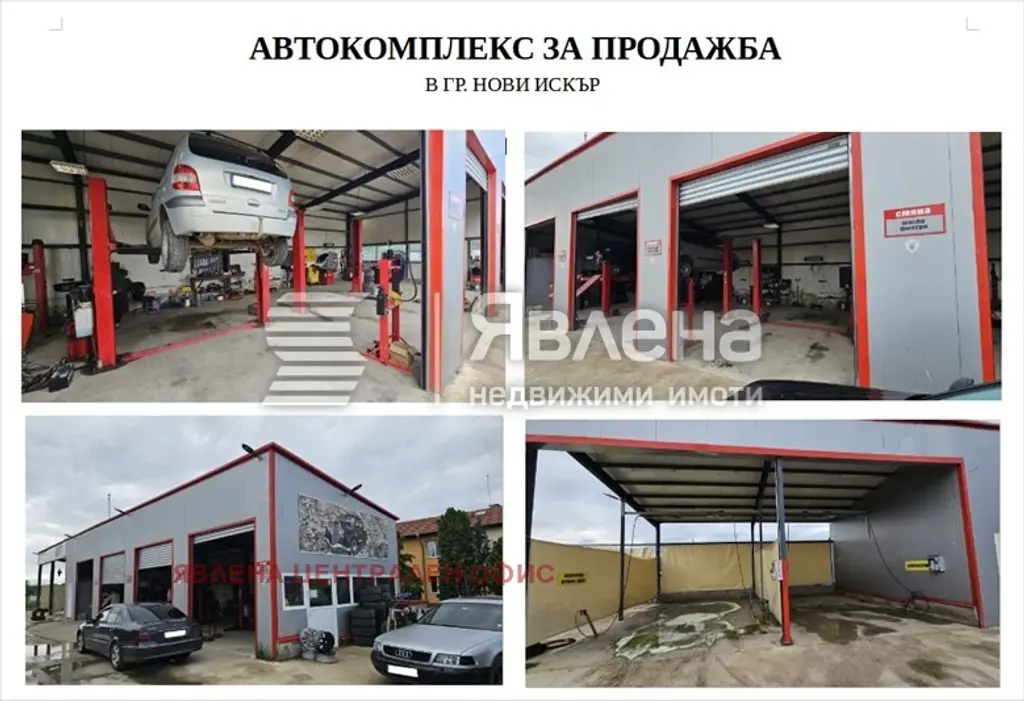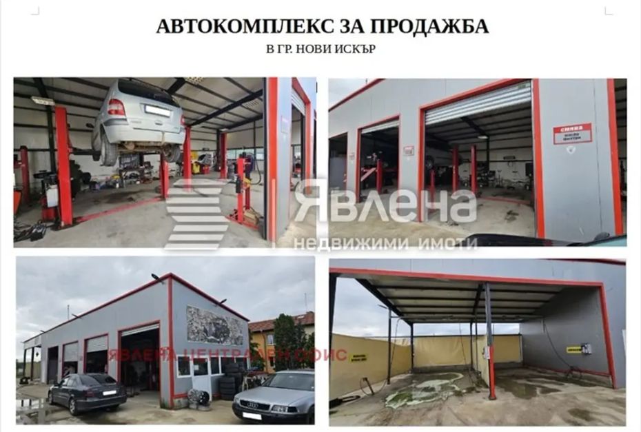 Явлена предлага за продажба работещ автокомплекс в гр. Нови Искър. Параметри: автосервиз, автомивка, клетка за ремонт и поправка на гуми, офис. Автосервизът е изцяло оборудван и се състои от две клетки с двуколонни подемника, една клетка с четириколонен подемник за реглаж, една клетка за ремонт и поправка на гуми и джанти. Сервизът разполага с автоматична машина за пълнене на автоклиматици. Автомивката разполага с две клетки за самообслужване и една клетка за прахосмукачка. Към него има и офис със санитарен възел. Застроена площ: 370 кв.м; Парцел: 1400 кв.м, с лице на асфалтов път, електрифициран и водоснабден. (yavlenaCOM/144742).