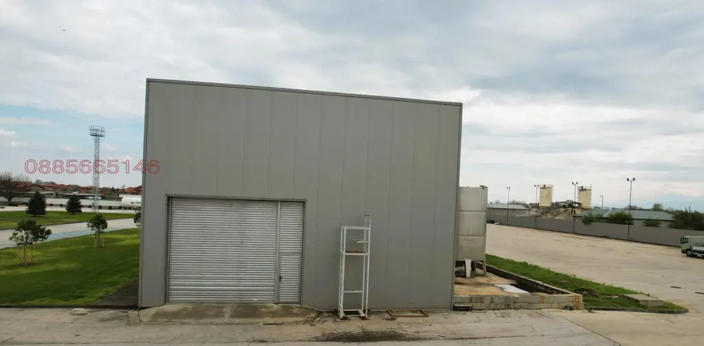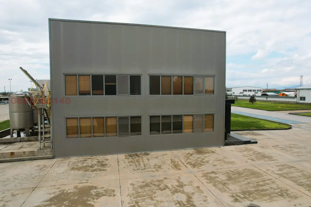 Всичките помещения са обзаведени и обурудвани с италиански луксозни офис медели и столове от естествена кожа . Отоплението и охлаждането на всички офис помещения става посредством термопомпа Кухнята има всичко хладилник,миална машина BOSCH и др.Офисната сграда разполага с конторл на достъп с видео .Целят терен е с видео наблюдение СОТ и окабелен с интернет връзки.Паркинг за леки коли пред халето и такъв за тежкотоварни зад него.Достъпът е през Конторно пропусквателен пункт с 24/7 жива охрана на цялата база.Имота е част в голямата производствена база на ''ИНСА'' !