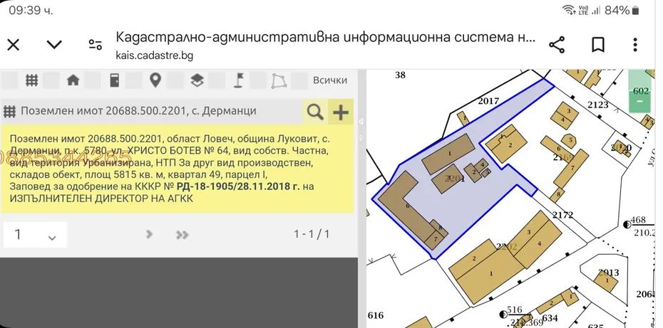 Продаваме имот в регулация с промишлено предназначение, с площ 5815 кв.м., с осем сгради (едно- и двуетажни) на стратегическо място - с вход от главен път Дерманци - Луковит и достъп чрез нова общинска улица-тупик, обслужваща и съседни УПИ-та.