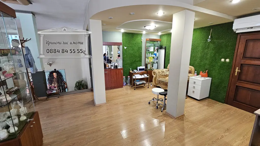 Помещението в момента се ползва за салон за красота, напълно обзаведено и в отлично състояние като има следното разпределение: