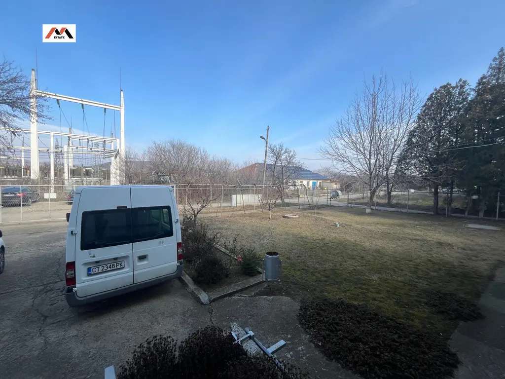 Двуетажна масивна сграда със сглобяема панелна конструкция, застроена върху противоатомно скривалище с РЗП 1014 кв.м. .В по- голямата си част сградата е обособена в пет учебни зали /кабинета, конферентна зала и др./Останалата част е приспособена за използване за производствени цели и представлява хале по цялата височина на сградата.Пода е изолиран с киселиноустойчиви плочки .Разполага със сервизни помещения , а именно 1 баня и две тоалетни.Противоатомното скривалище е монолитно стоманобетонова конструкция с дебелина на вътрешните стени 0,90 м. Пода е с циментова замаска. Имота разполага със собствен сондаж.Урбанизиран е за складова и каучукова промишленост.Разполага с проект за 70 Кw.Годината на построяването е 1973. Застроена площ-507 кв.м- промишлена база и 124 кв.м- складова база/сервизно помещение/ Авторемонтна работилница с цялостно оборудване /машина за боядисване на коли/Има три достъпа от един отюжната и два от северната страна/Има канализация РЗП- 1014 кв.м Площ Терен -2607 кв.м