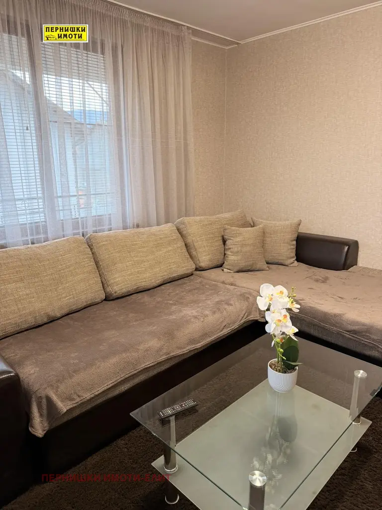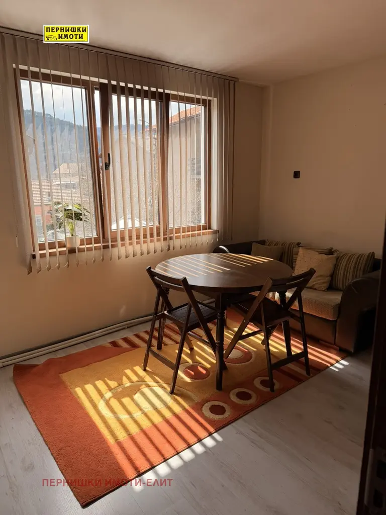 Агенция Пернишки имоти- Елит дава под наем първи етаж от триетажна къща в гр. Перник кв. Варош, в близост до Градския парк, хранителни магазини и др. Етажът се състои от кухня с трапезария с широка тераса, дневна, спалня и баня с тоалетна. Имотът е напълно обзаведен с всичко необходимо. Може да се използва и двора, в който има беседка и скара, но не се допускат домашни любимци.