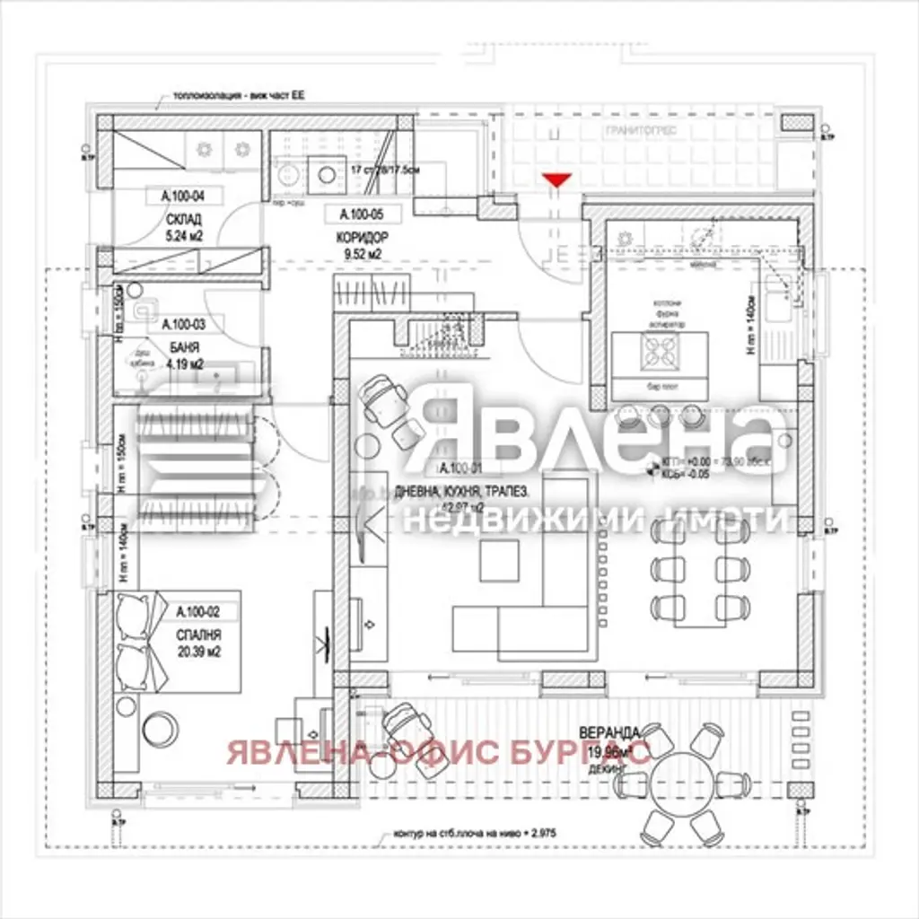 Веранда 19.96 кв.м., идеална за лятна трапеза или кът за почивка.